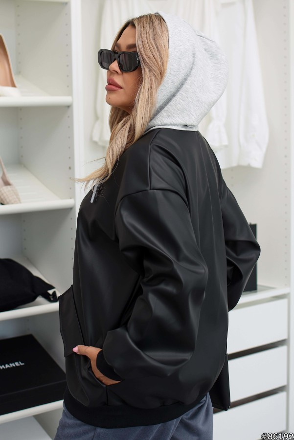 Бомбер Еко шкіра на байці колір: Чорний-сірий Заміри готового виробу розмір 46-48:
