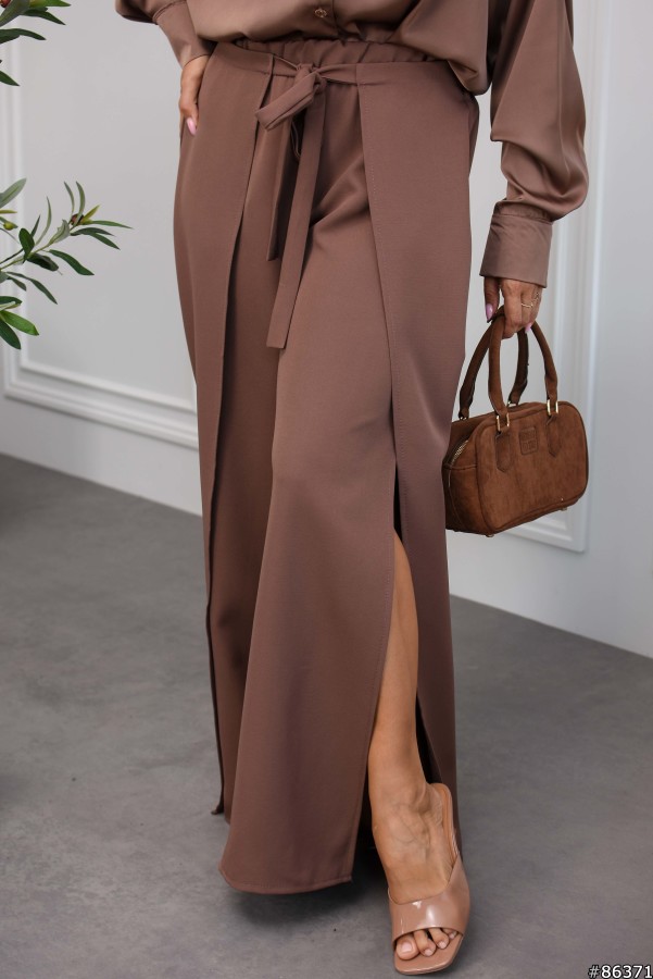 Брюки Костюмна тканина колір: Мокко Брюки з імітацією запаху.