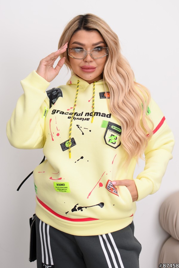 Худі Тринитка на флісі колір: Лимонний Заміри готового виробу розмір 48-50: