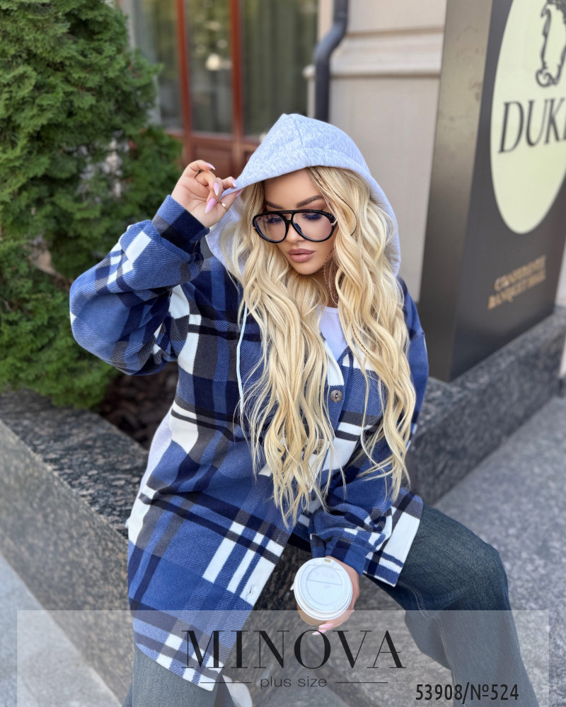 Кардиган-сорочка у клітинку з трикотажним капюшоном — стильне та зручне рішення для прохолодних днів.Модель має вільний крій із заниженою лінією плеча, довгі рукави з манжетами та застібку на ґудзики. Подовжена форма робить її універсальною: можна носити як легке верхнє вбрання чи як самостійну річ. М’яка та тепла тканина дарує комфорт, а капюшон додає образу сучасного міського характеру.