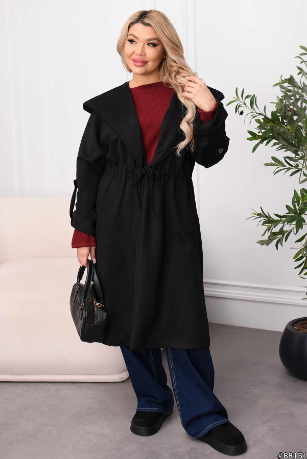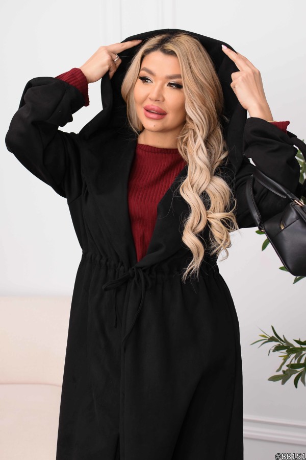 Кардиганпальто Замша колір: Чорний Заміри готового виробу розмір 48-50: