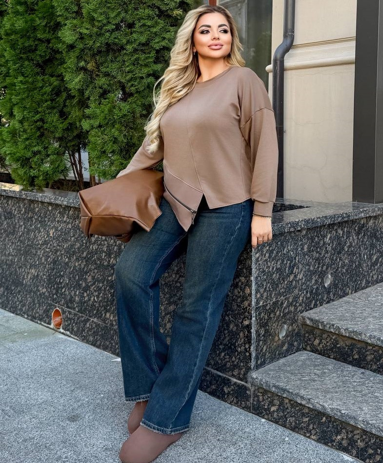 46-48: Обʼєм грудей-110см, Обʼєм талії-110см, Довжина рукава від горловини-65см, Довжина по спинці-58см
