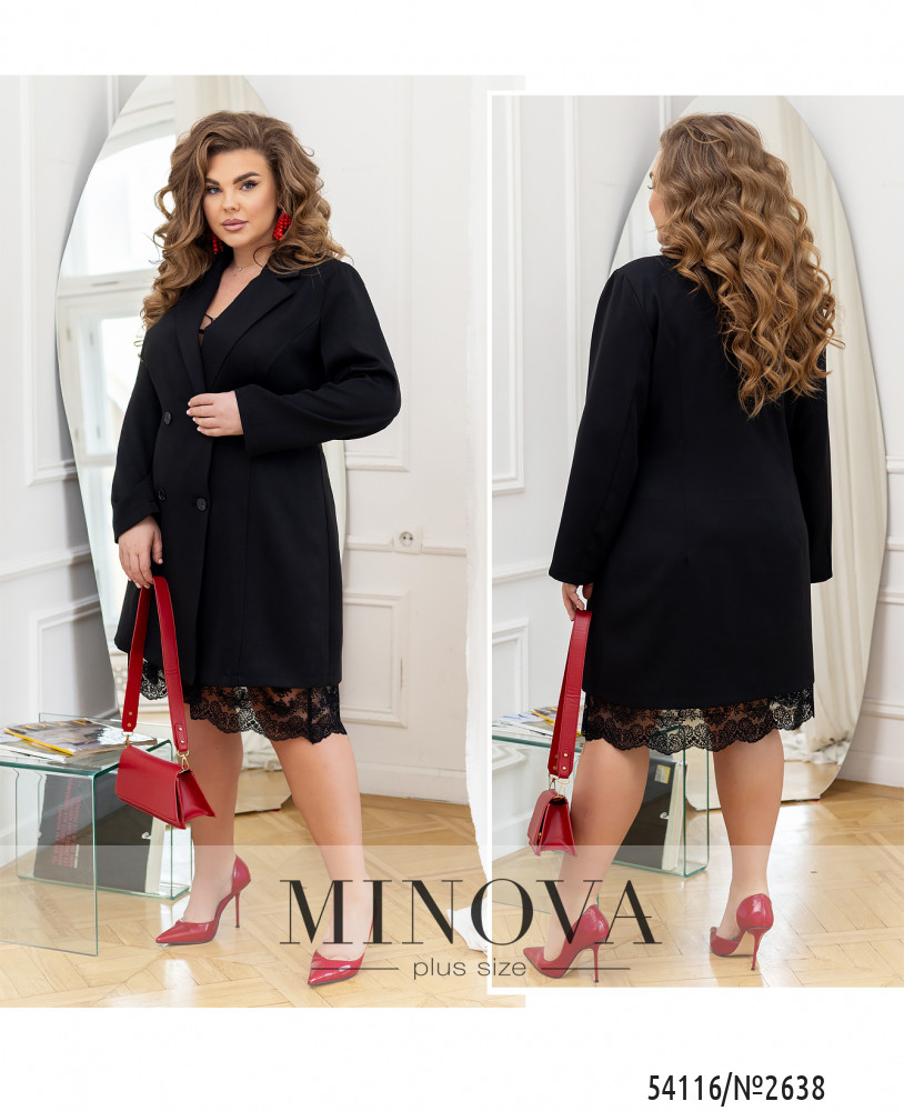 Це той самий костюм, який працює на тебе в будь-якому настрої.Подовжений двобортний жакет — із чіткою лінією плеча та класичним відкладним коміром. Силует злегка приталений, красиво підкреслює фігуру та не сковує рухів. Довжина продумана так, що жакет можна носити як самостійну сукню — виглядає сміливо, стильно і дуже впевнено.Спідниця — окрема любов. Лаконічна по крою, з витонченим мереживом по низу, яке додає образу жіночності та легкої інтриги. І головне — вона на гумці, тому ідеально сідає по талії та дарує комфорт протягом усього дня.Носи комплект під настрій:зі спідницею — для більш романтичного, витонченого образуабо без неї — як самостійний жакет-сукню для ефектного виходуЦе костюм, який легко адаптується під тебе — сьогодні стримано й елегантно, завтра з характером і вау-ефектом