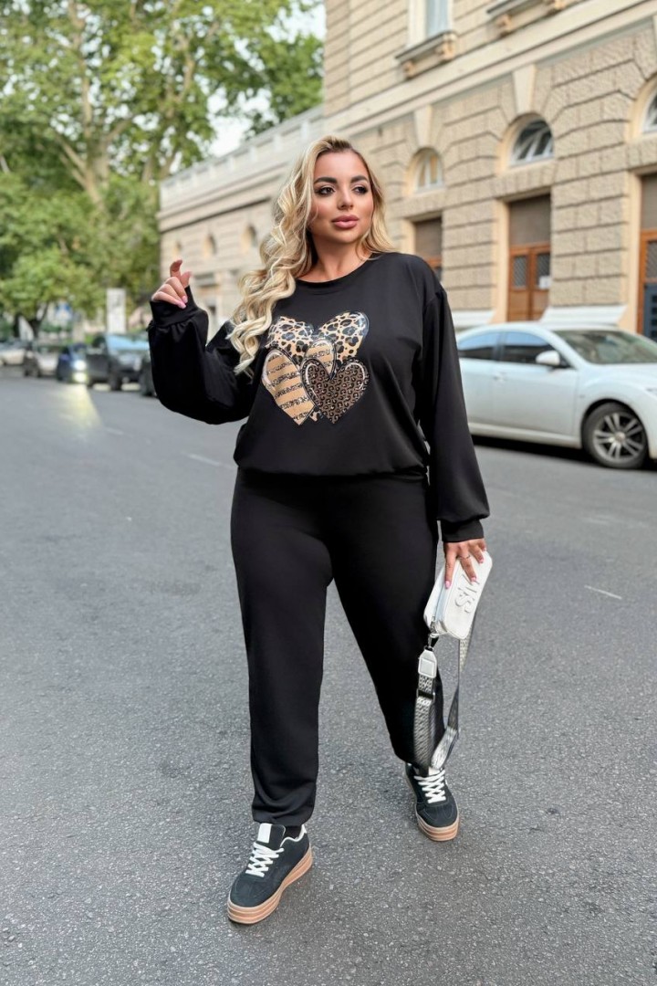 ОГ – 130 см ОТ по манжету кофти 116 см ОТ по гумці штанів 90 см (у розтягнутому 130 см) ОБ- 125 см Довжина штанів 100 см, кофта 62 см