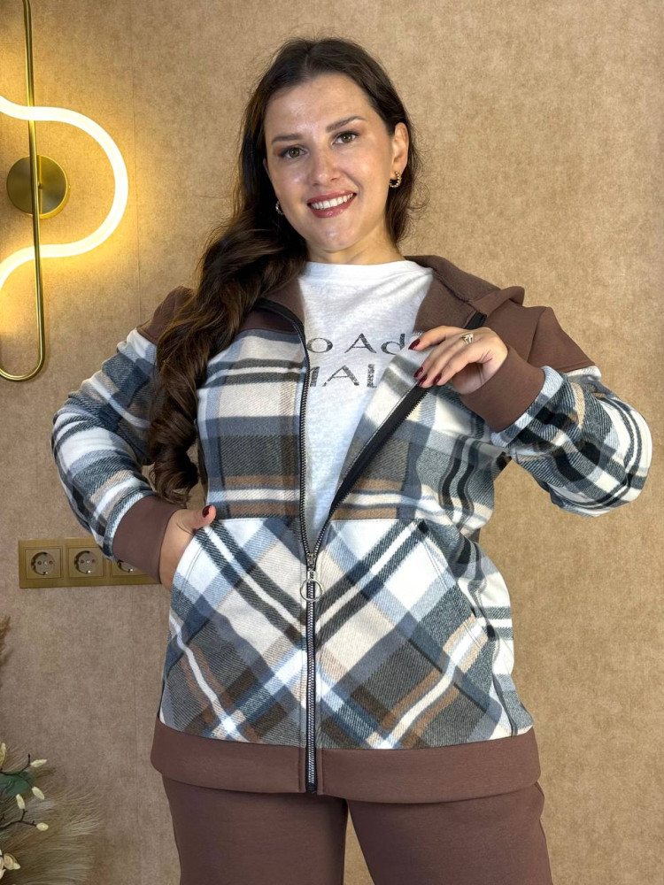 Кофта: Обʼєм грудей-114см, Обʼєм талії-114см, Низ-114см, Довжина рукава-61см, Довжина по спинці-73см