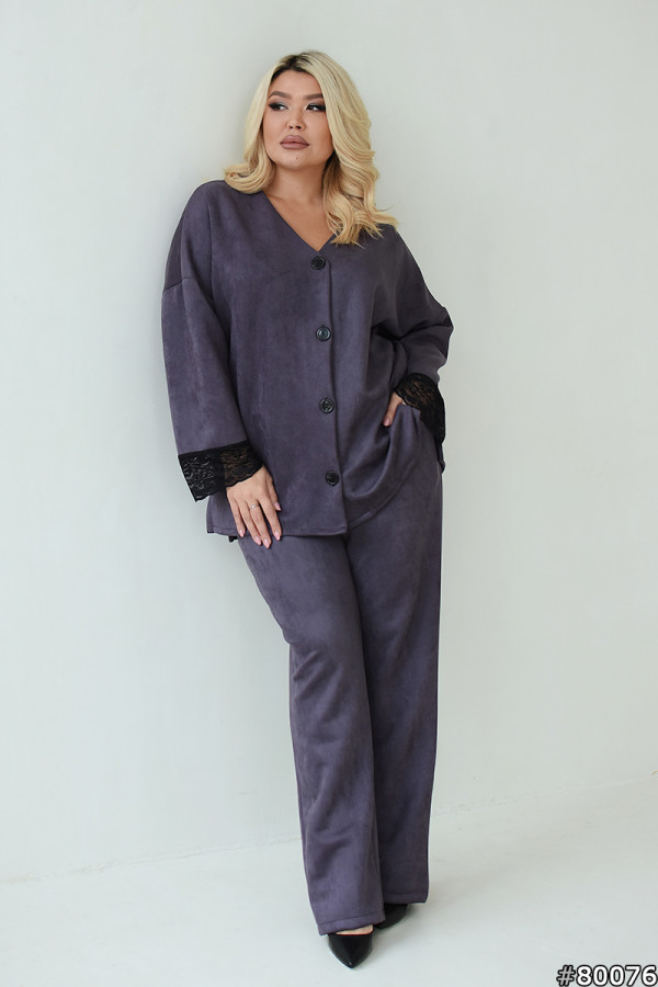 Костюм Замша колір: Сірий Заміри готового виробу розмір 48-50:
