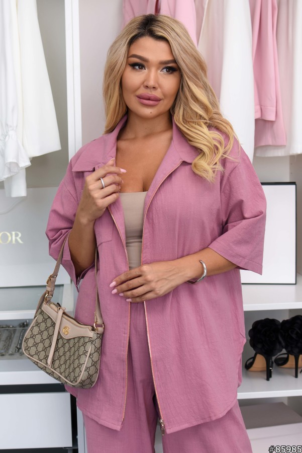 Костюм Льон жатка колір: Пудра Заміри готового виробу розмір 50-52: