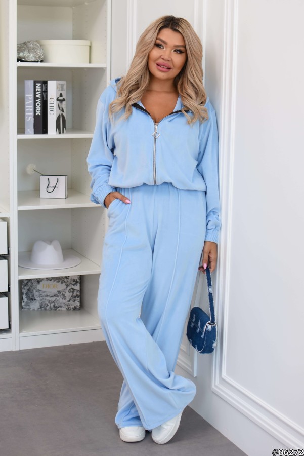 Костюм Велюр колір: Блакитний Заміри готового виробу розмір 50-52: