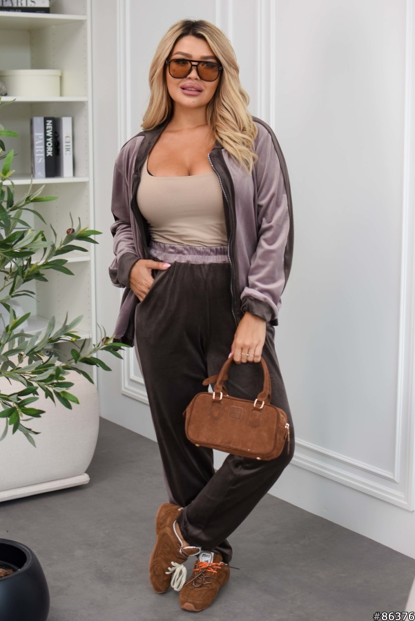 Костюм Велюр колір: Світло коричневий Заміри готового виробу розмір 50-52: