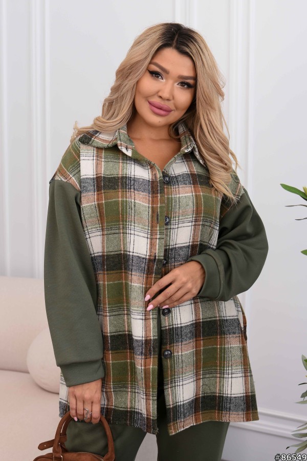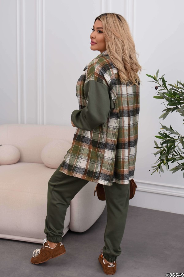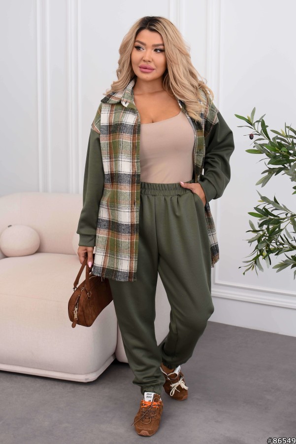 Костюм Вовна+трикотаж колір: Хакі Штани та рукава сорочки, виконані трикотажем.Сорочка - Вовна