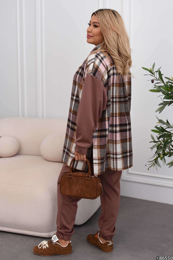Костюм Вовна+трикотаж колір: Мокко Штани та рукава сорочки, виконані трикотажем.Сорочка - Вовна