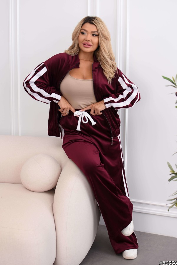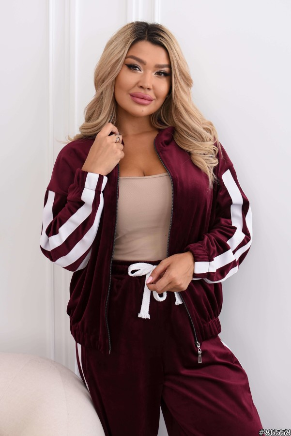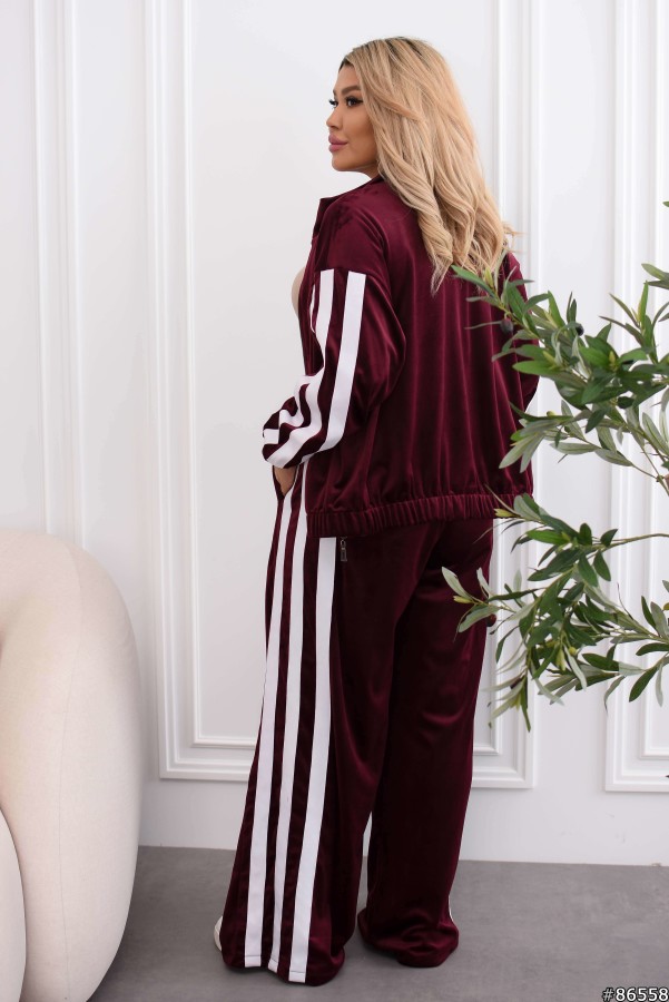 Костюм Велюр колір: Бургунді Заміри готового виробу розмір 50-52: