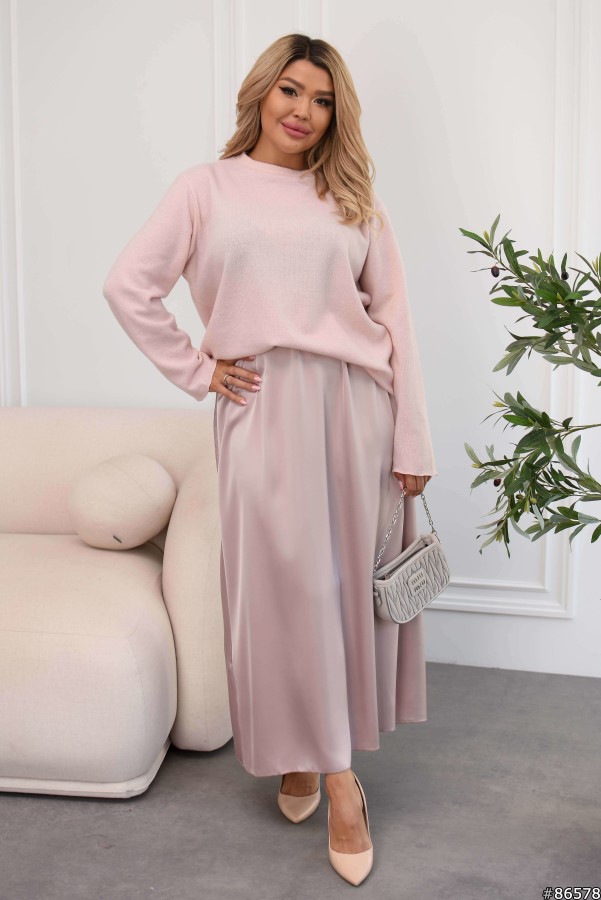 Костюм Ангора+дабл Армані колір: Пудра-ліловий Спідниця :