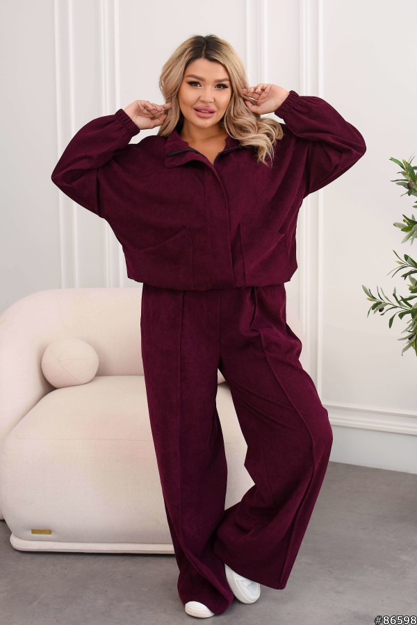 Костюм Мікровельвет колір: Бургунді Заміри готового виробу розмір 50-52: