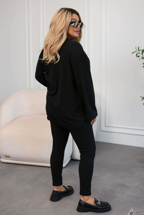 Костюм Трикотаж Рубчик колір: Чорний Заміри готового виробу розмір 50-52: