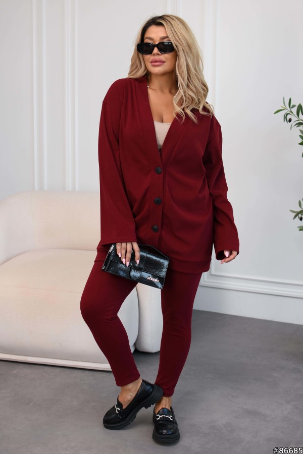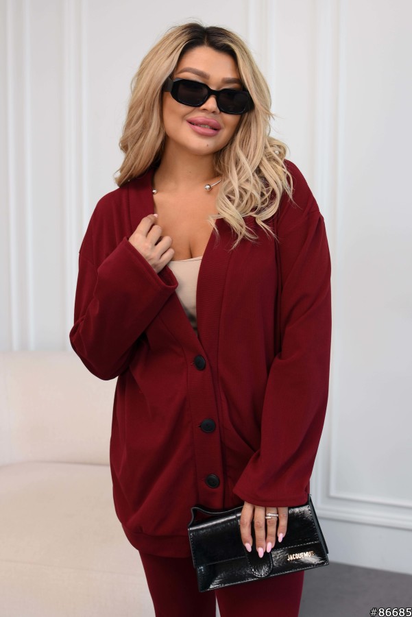 Костюм Трикотаж Рубчик колір: Темно-червоний Заміри готового виробу розмір 50-52: