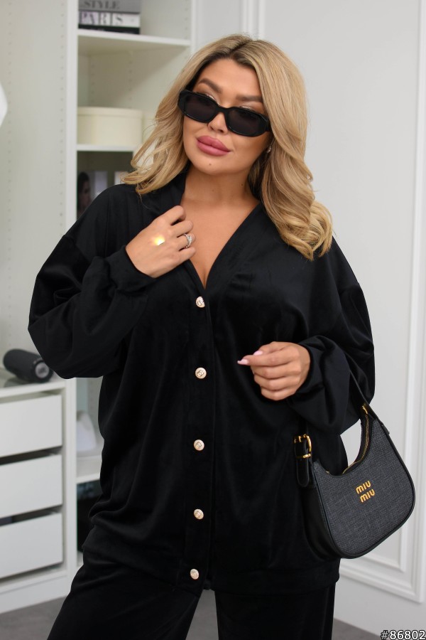 Костюм Велюр колір: Чорний Тканина тягнеться на +8 см