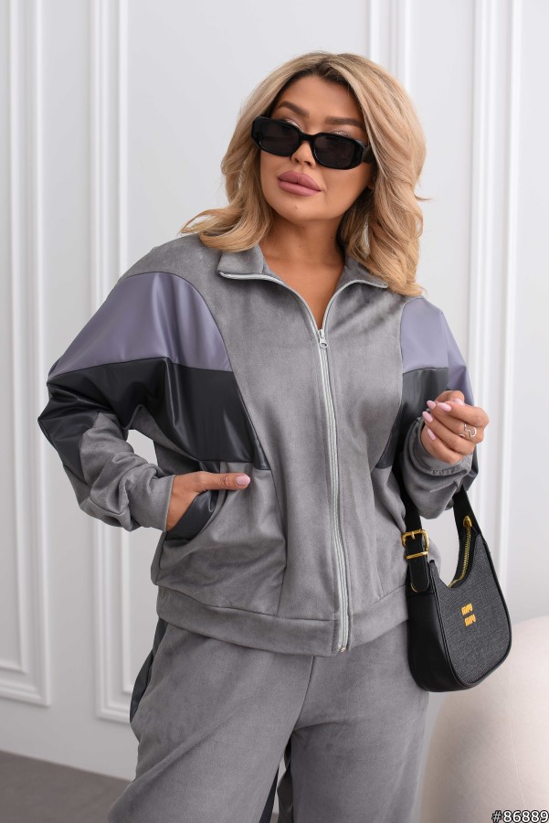 Костюм Замша діагональ+еко шкіра колір: Сірий Заміри готового виробу розмір 46-48:
