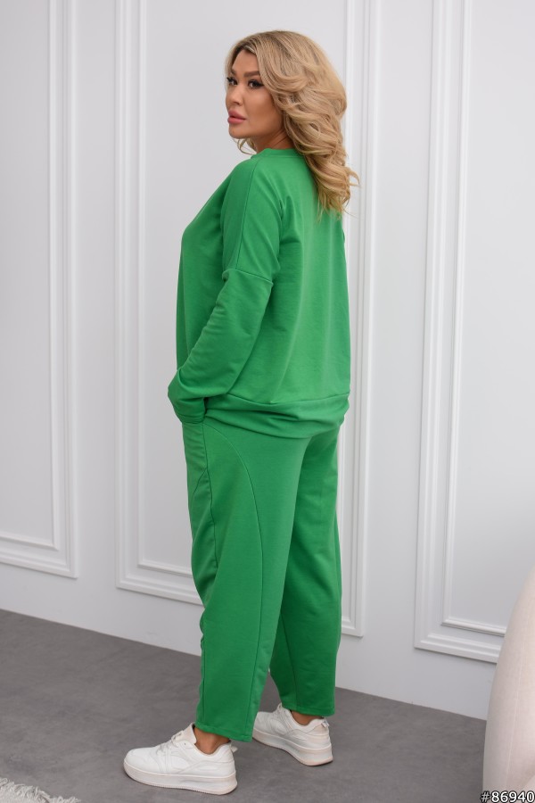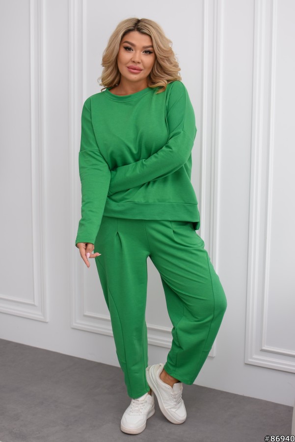 Костюм Двонитка колір: Зелений Заміри готового виробу розмір 48-52: