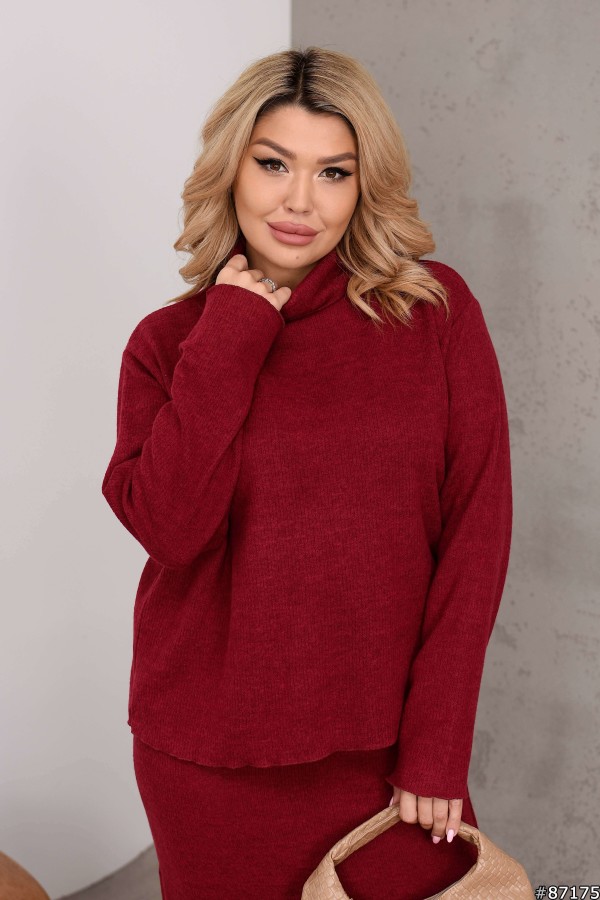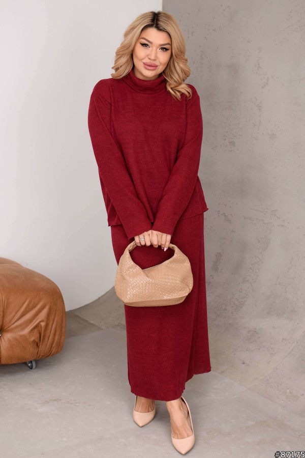 Костюм Ангора Рубчик колір: Бордовий Заміри готового виробу розмір 50-52: