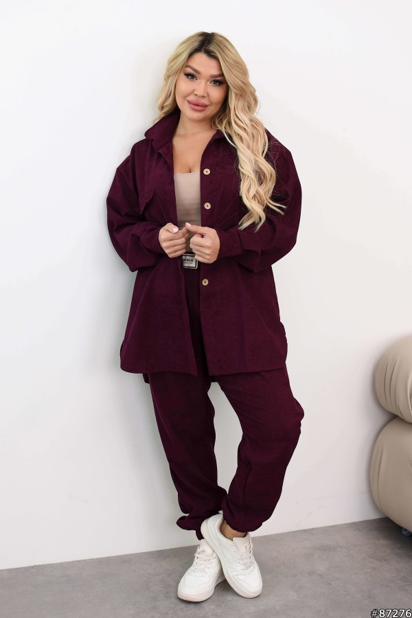 Костюм Вельвет колір: Бордовий Заміри готового виробу розмір 50-52: