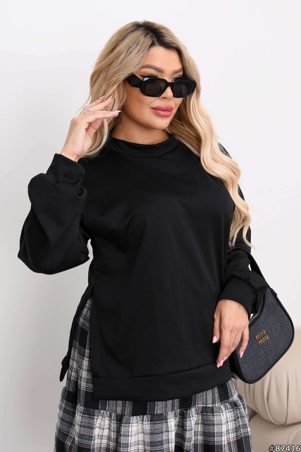 Костюм Трикотаж+фланель колір: Чорний Заміри готового виробу розмір 48-50:
