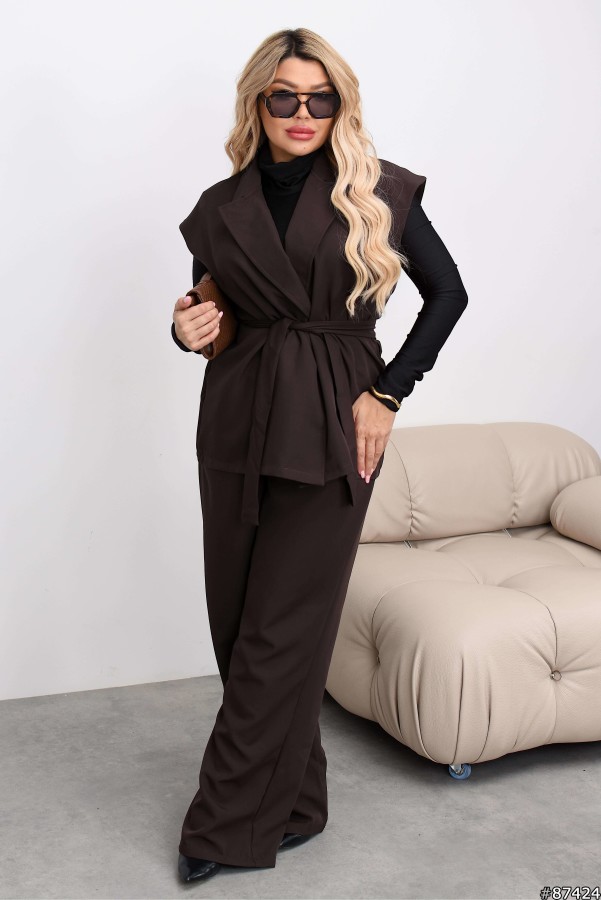 Костюм Креп костюмна тканина колір: Шоколад Жилет без підкладки