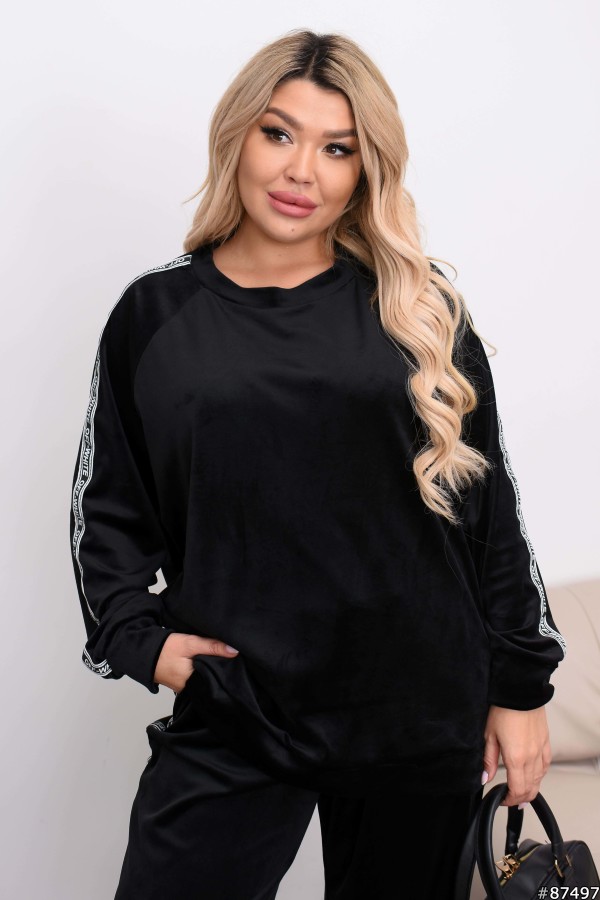 Костюм Велюр колір: Чорний Заміри готового виробу розмір 50-54: