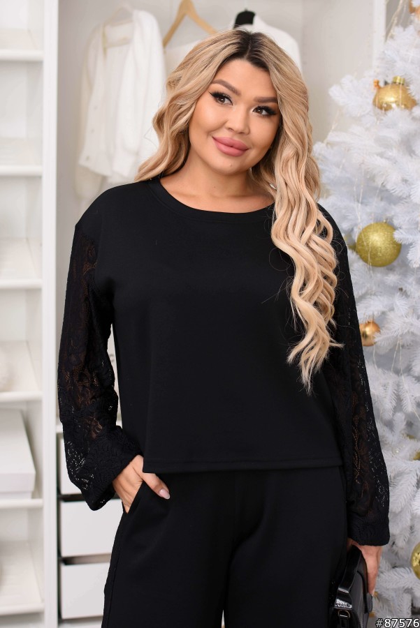 Костюм Трикотаж+гіпюр колір: Чорний Заміри готового виробу розмір 50-52: