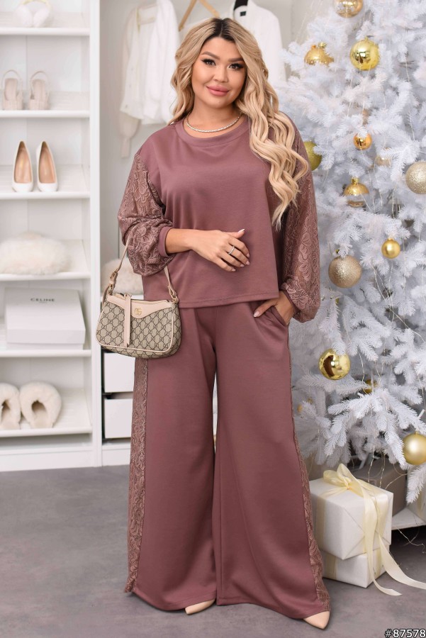 Костюм Трикотаж+гіпюр колір: Шоколад Заміри готового виробу розмір 50-52: