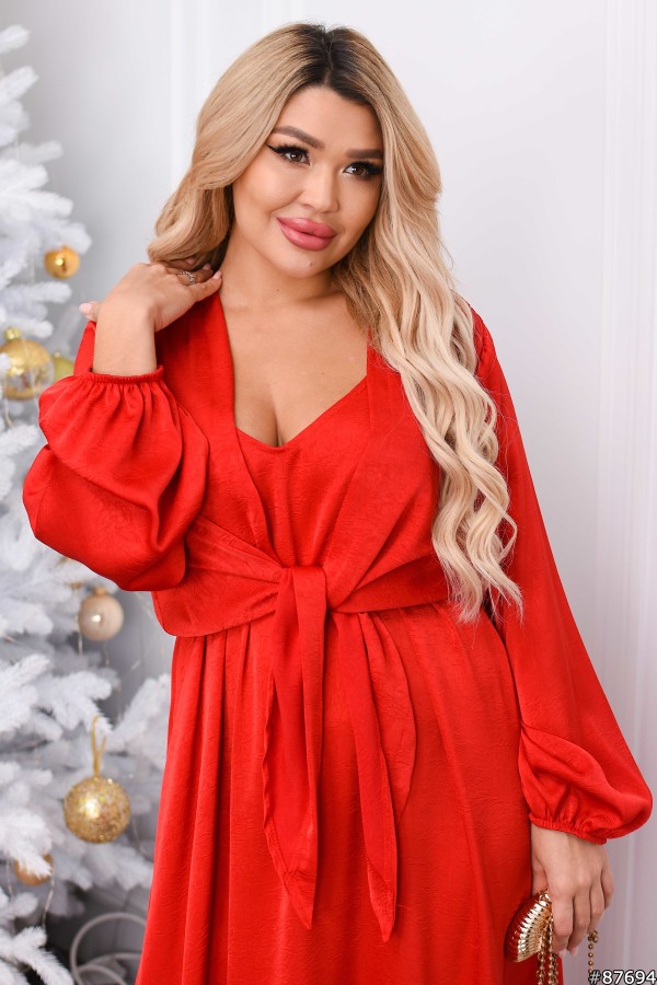 Костюм Жатий шовк Армані колір: Червоний Накидка на завʼязці.Сукня на регульованих бретелях.