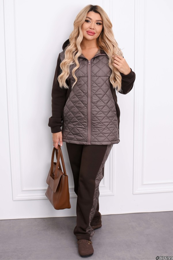 Костюм Тринитка на флісі+плащівка лаке колір: Шоколад Тканина: