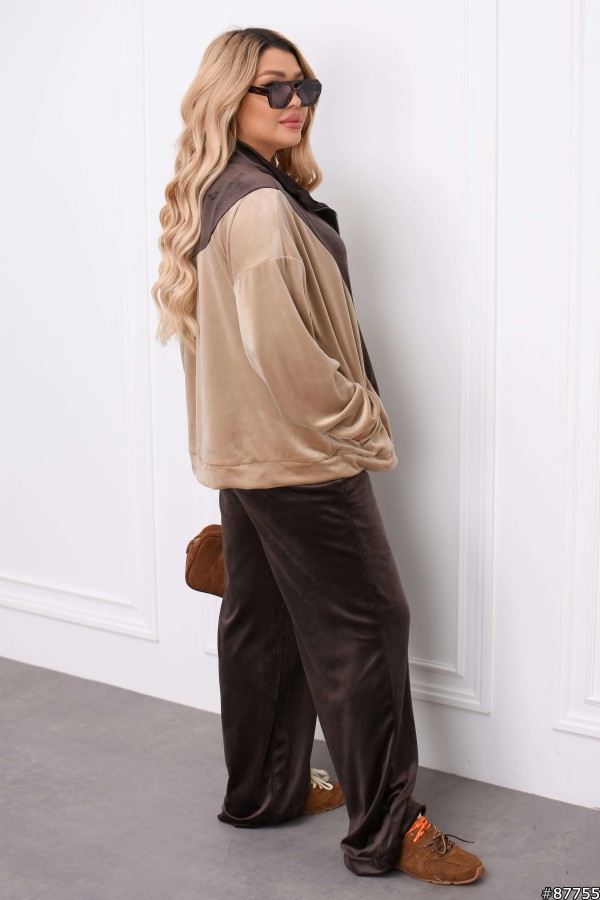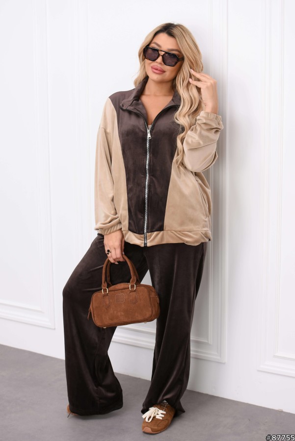 Костюм Велюр колір: Шоколад Заміри готового виробу розмір 50-52: