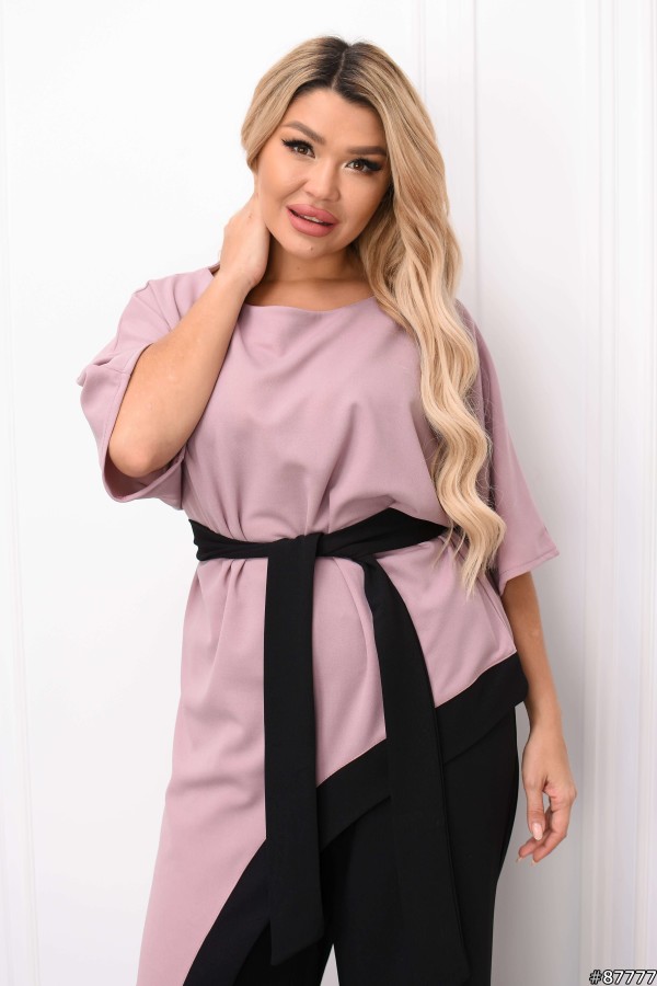 Костюм Креп-дайвінг колір: Пудра Посадка брюк высока,пояс резинкаЗаміри готового виробу розмір 50-52: