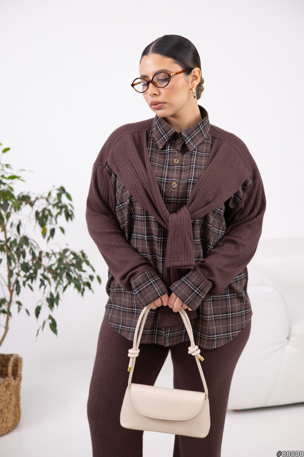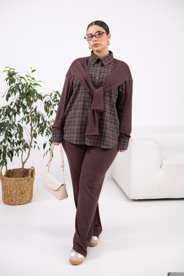 Костюм Фланель+ангора рубчик колір: Шоколад Сорочка: