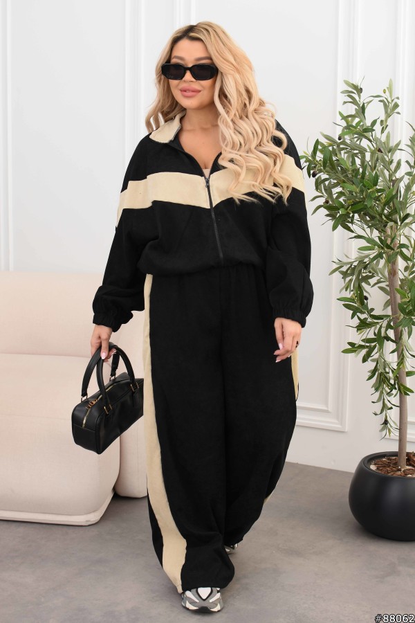 Костюм Мікровельвет колір: Чорний Заміри готового виробу розмір 42-46: