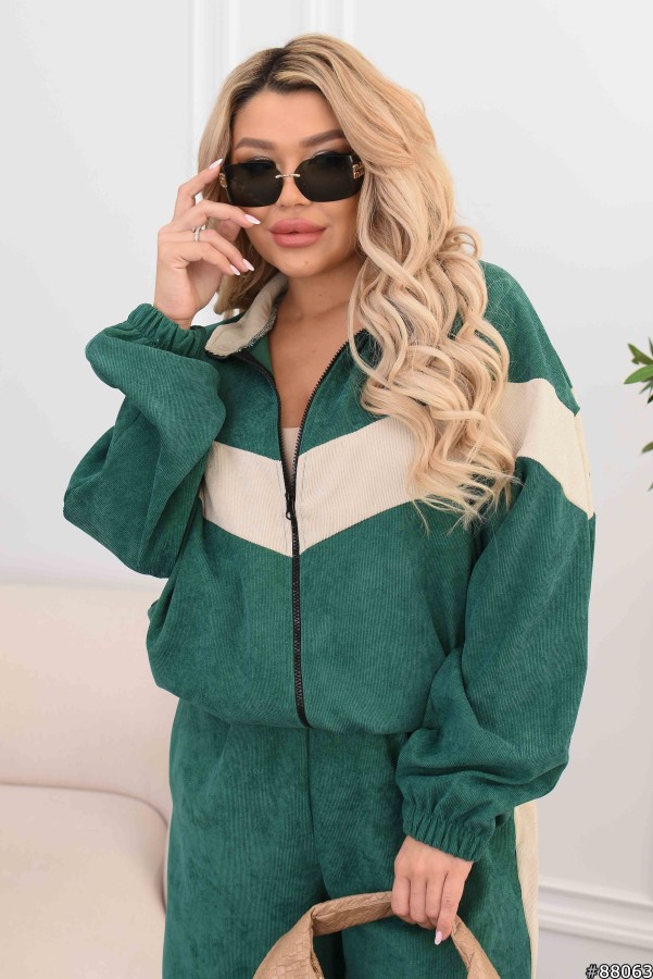 Костюм Мікровельвет колір: Зелений Заміри готового виробу розмір 42-46:
