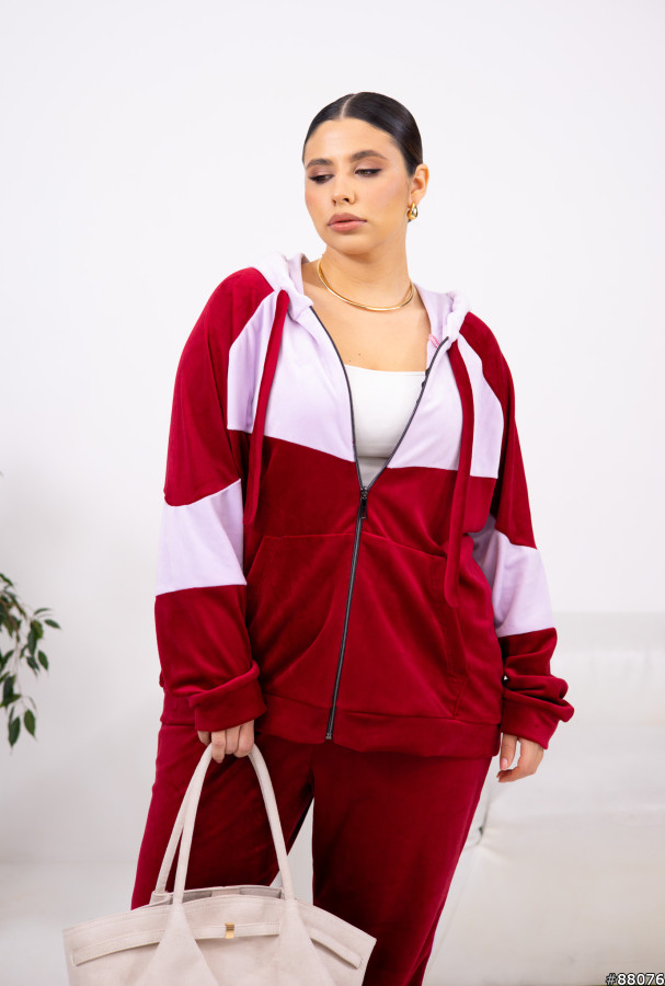 Костюм Велюр колір: Бордовий Заміри готового виробу розмір 50-52: