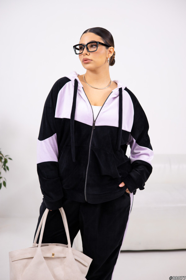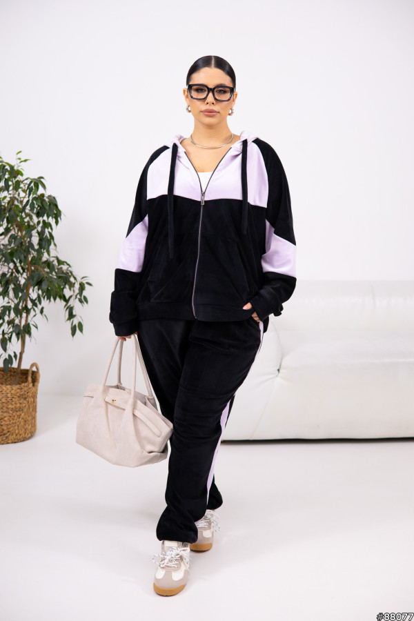 Костюм Велюр колір: Чорний-лаванда Заміри готового виробу розмір 50-52: