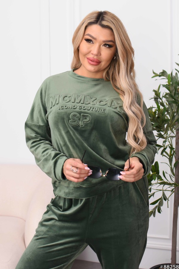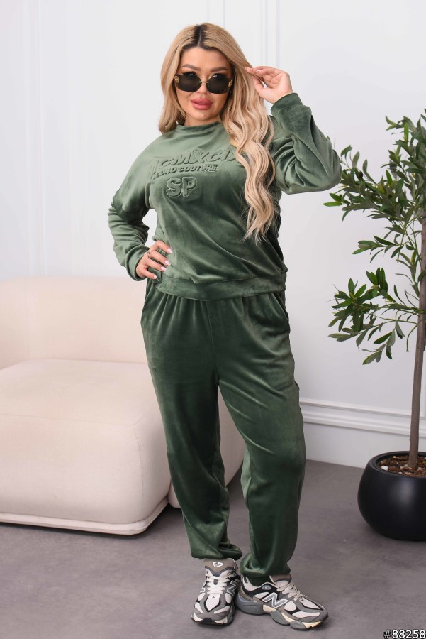 Костюм Велюр колір: Хакі Заміри готового виробу розмір 48-50: