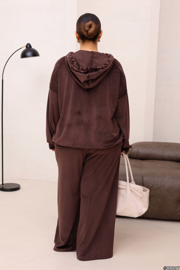 Костюм Велюр колір: Шоколад Заміри готового виробу розмір 48-50: