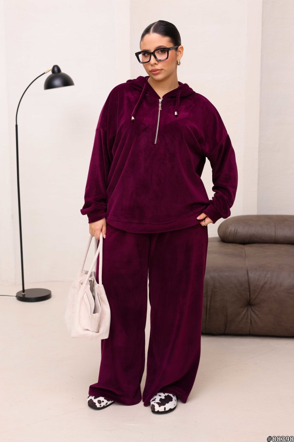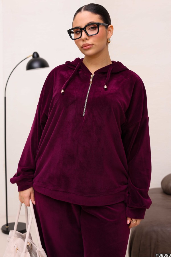 Костюм Велюр колір: Бургунді Заміри готового виробу розмір 48-50: