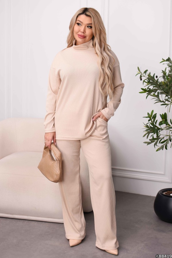 Костюм Трикотаж Рубчик колір: Бежевий Заміри готового виробу розмір 48-50: