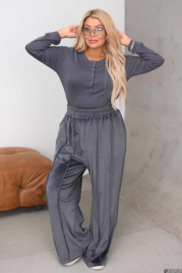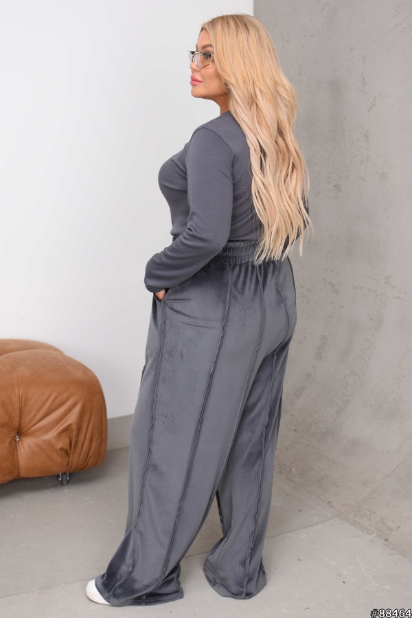 Костюм Рубчик+велюр колір: Графіт Тканина:
