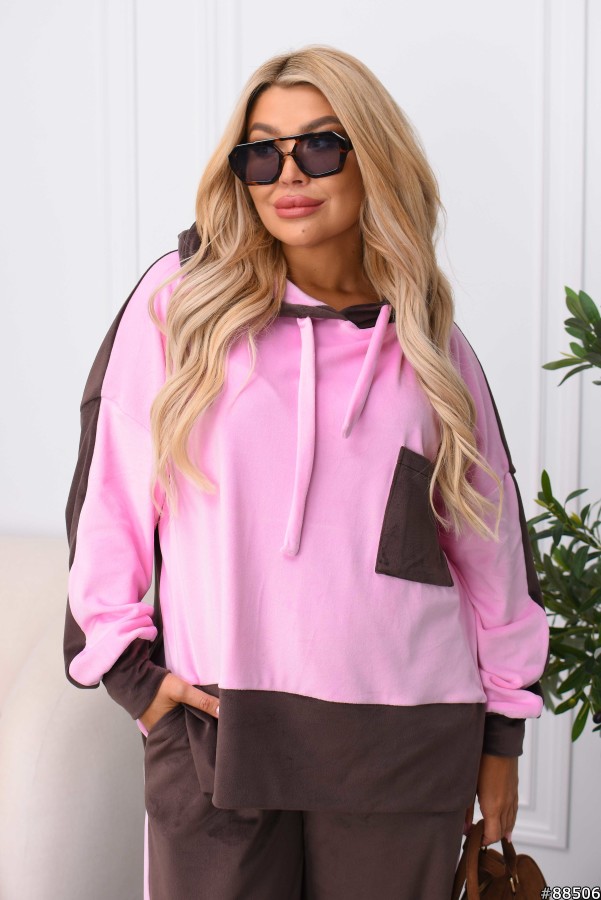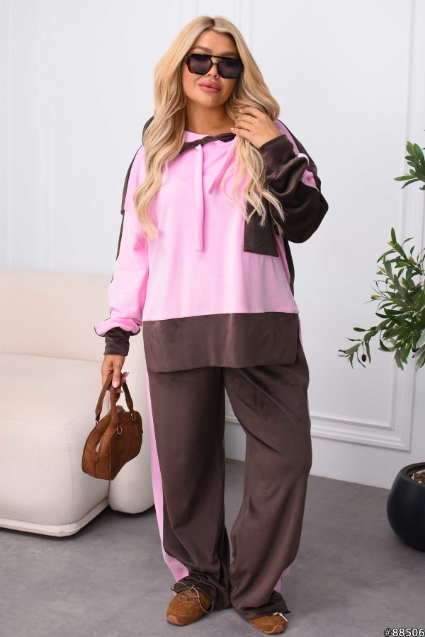 Костюм Велюр колір: Шоколад-рожевий Заміри готового виробу розмір 50-52: