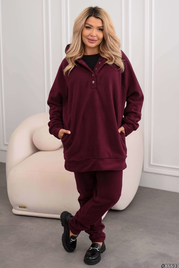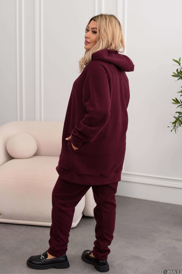 Костюм трійка Фліс+рубчик колір: Бургунді Тканина майки: