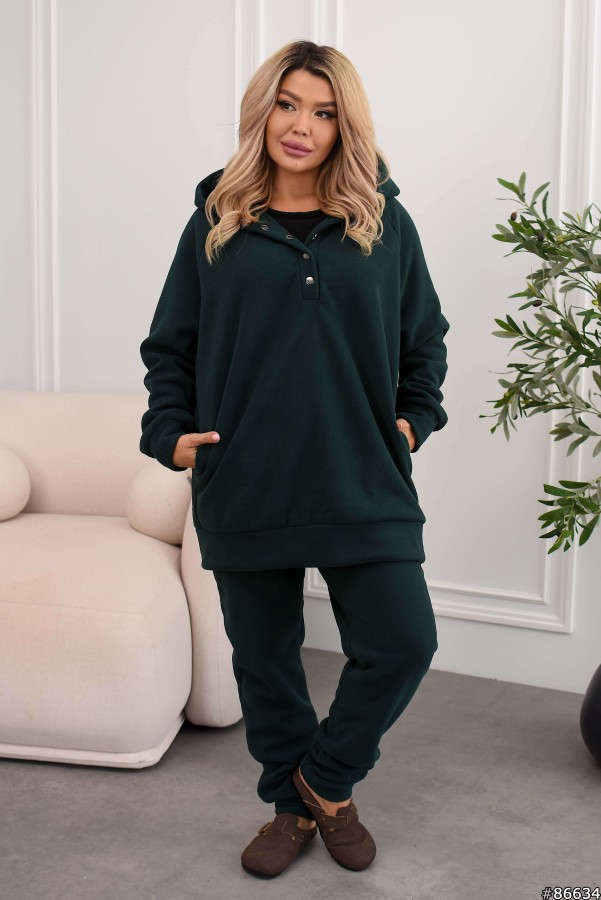 Костюм трійка Фліс+рубчик колір: Смарагд Тканина майки: