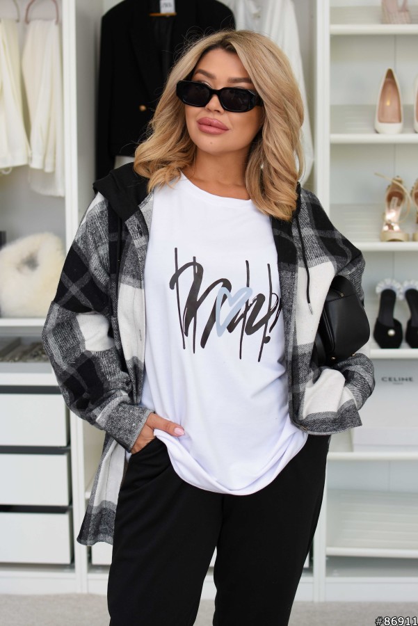 ОГ - 148 см; ОТ - 138 см; ОС - 138 см; Довжина - 76 см; Довжина рукава 76 см; Футболка:
