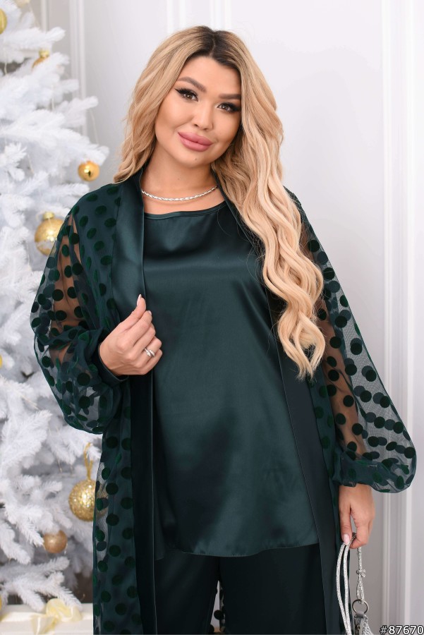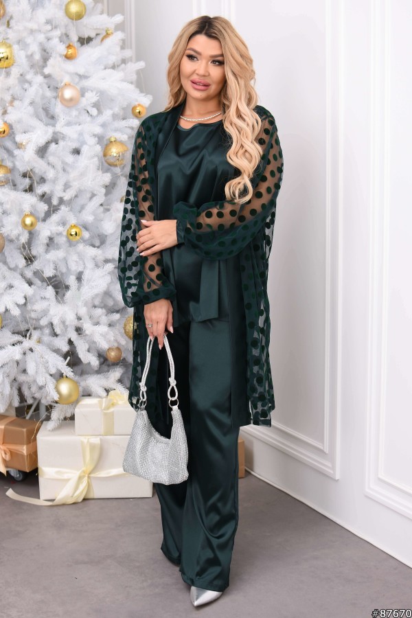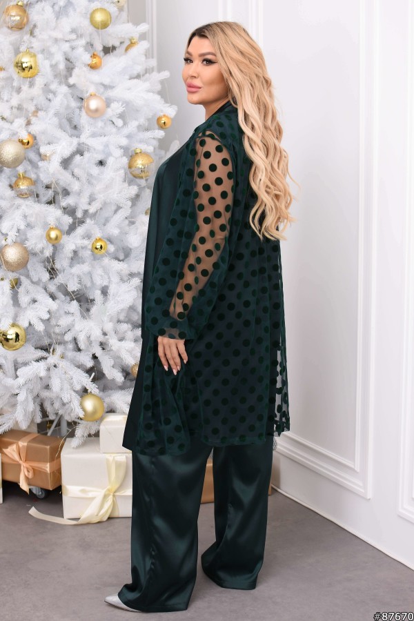 Костюм трійка Атлас колір: Темно зелений Заміри готового виробу розмір 48-50: