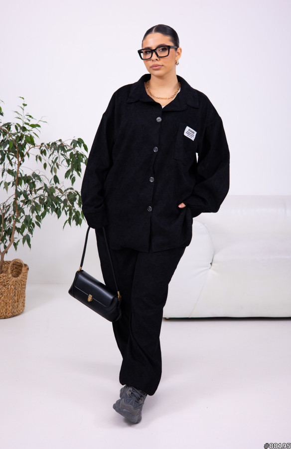 Костюм трійка Мікровельвет колір: Чорний Майка з тканини мікро рубчик